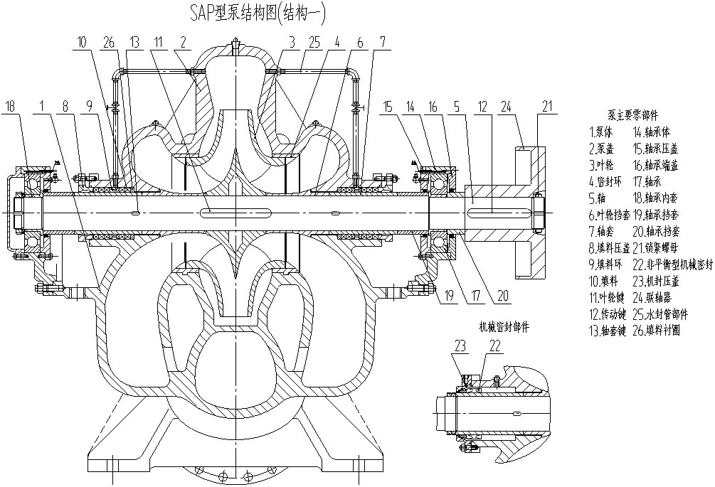 SAP型系列泵結(jié)構(gòu)見圖所示